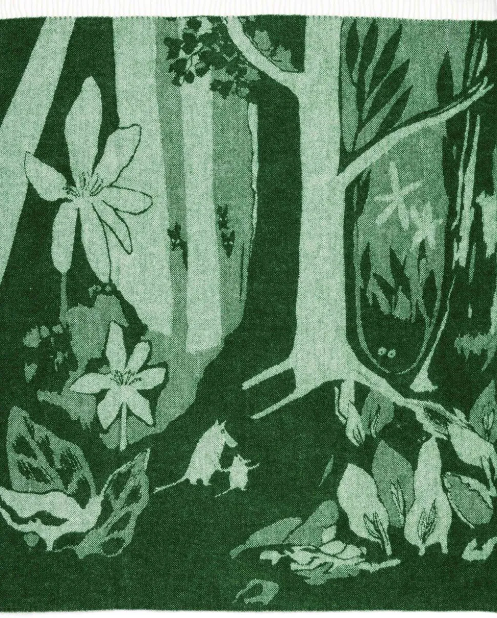 Smyg dig ind i det dejligt varme Mumi-uldtæppe. Det grønne tæppe har en fortryllende illustration inspireret af den første mumihistorie, Mumitroldene og den store oversvømmelse. Tæppet er lavet af 100% uld. Moomin Arabia-uldtæppe grøn, 130×170