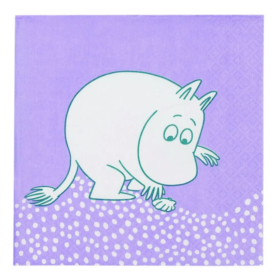 For mumierne er hver dag den perfekte dag til en strandpicnic. En dag kalder Snorkfrøken Mumitrolden til stranden, men Mumitrolden bliver distraheret af nogle knapper og ender med at møde Fuddler. De bliver venner, og Fuddler tager med mumierne på stranden. Mumimor arrangerer en picnic! Moomin Arabia-papirserviet 33 cm Stranddag
