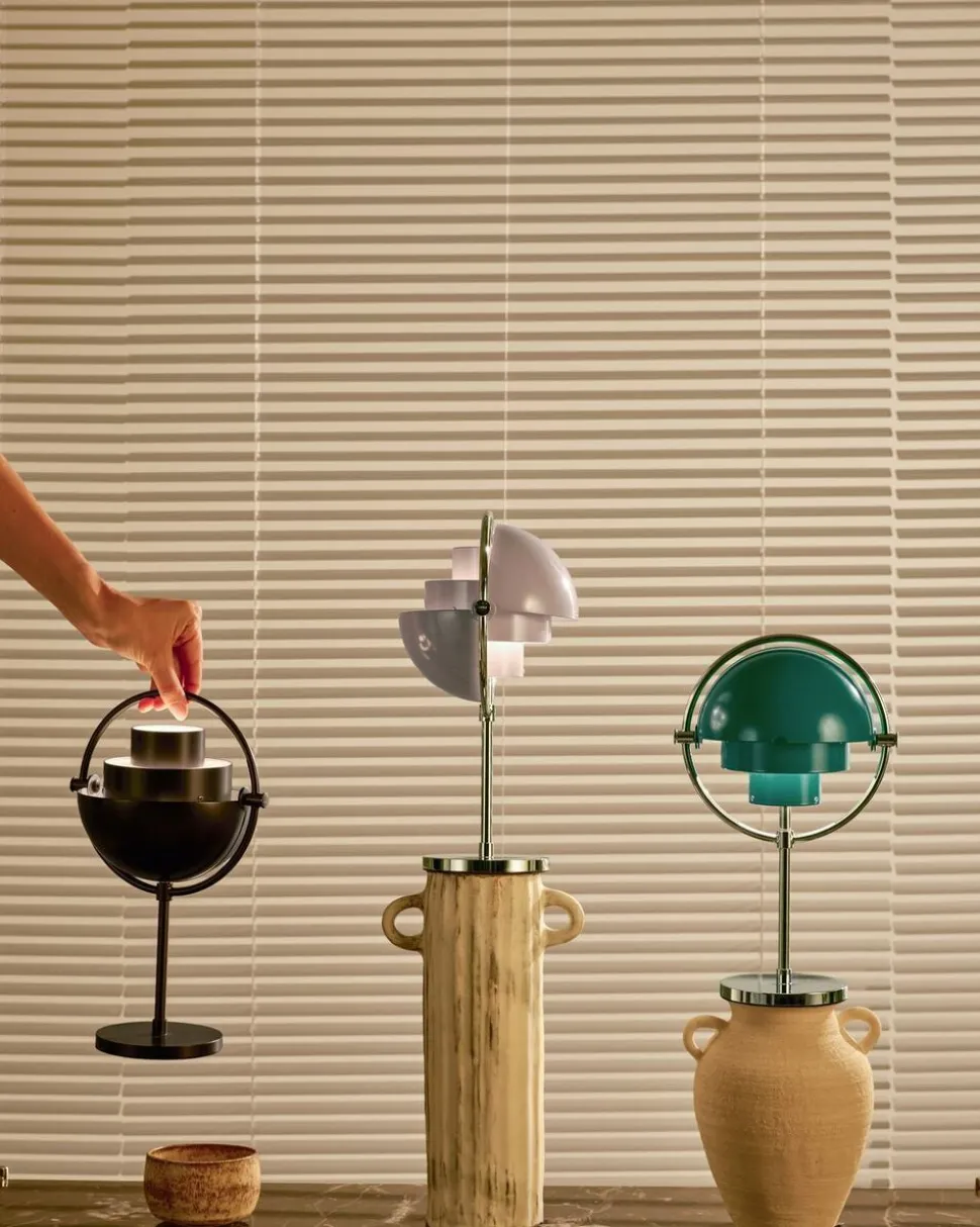 GUBI’s nye udgave af Louis Weisdorfs skulpturelle og opfindsomme Multi-Lite-Design giver yderligere fleksibilitet til et af det 20. århundredes mest tilpasningsdygtige lysdesign og gentænker den unikke lampe i et bærbart format. I samarbejde med designerens familie har GUBI ombygget hver eneste komponent i Multi-Lite Bordlampen i et mere Kompakt Design, indbygget en USB-opladningsfacilitet og indbygget en tre-trins berøringsaktiveret lysdæmperfunktion. Signaturringen omkring lampen fungerer nu dobbelt så godt som et håndtag, så letvægtslampen nemt kan bæres rundt og uden for hjemmet – den ideelle ledsager til Outdoor begivenheder og udendørs aftener