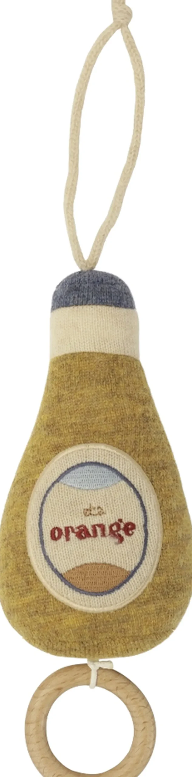 Aktivitets-drop-down musiklegetøj lavet af uld. Afspiller lullaby-musik i 100 sekunder, når du trækker i træringen. Med praktisk strikket bøjle. Hæng den på babyens krybbe eller legepen