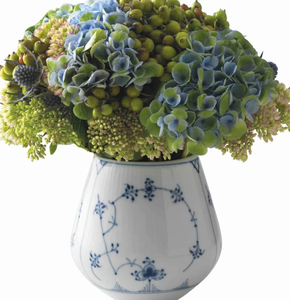 Musselmalet Riflet fascinerer med sin klassiske alsidighed. Den yndefulde dekoration fremhæver de delikate former og det fine håndværk, der ligger bag hver steldel. Musselmalet Riflet er et tidløst stel