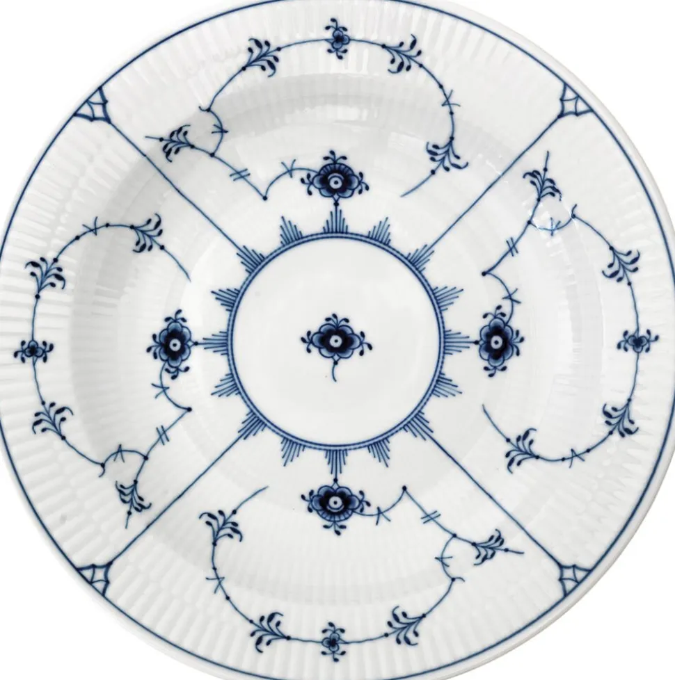 Som den største af de dybe tallerkener i Royal Copenhagens sortiment er 27 cm Musselmalet Riflet dyb Tallerken perfekt til servering af lækre pastaretter eller livlige salater.