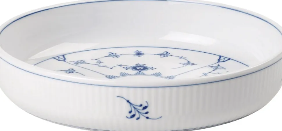 Den evige klassiker, Musselmalet Riflet, får en ny, kontemporær og funktionel dimension med Musselmalet Riflet ovnfast fad på 18,5 cm i diameter. Det klassiske mønster fra 1775 dekorerer indersiden af fadet og træder frem i fuld flor, når måltidet er nydt.