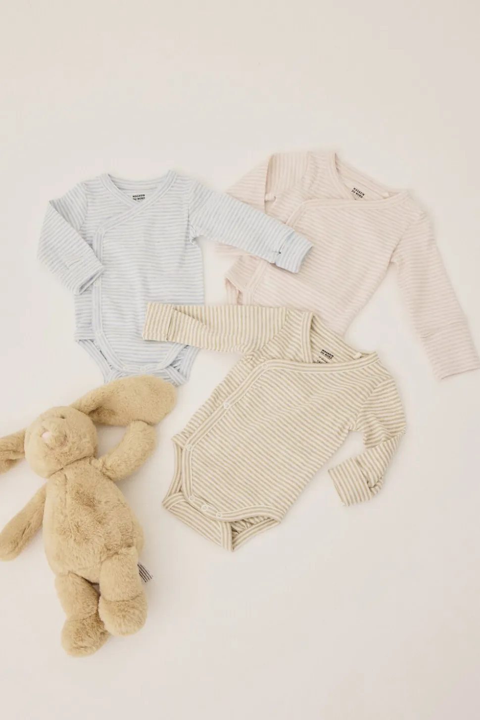 Body fra Magasin du Nord Collection i den blødeste kvalitet af 100% økologisk bomuld med GOTS-certificering. Bodyen er enkel i modellen med smalle striber, lange ærmer, komfortable ribkanter, ’slå om’-trykknaplukning på fronten samt trykknapper i kilen. En skøn body i den lækreste kvalitet.