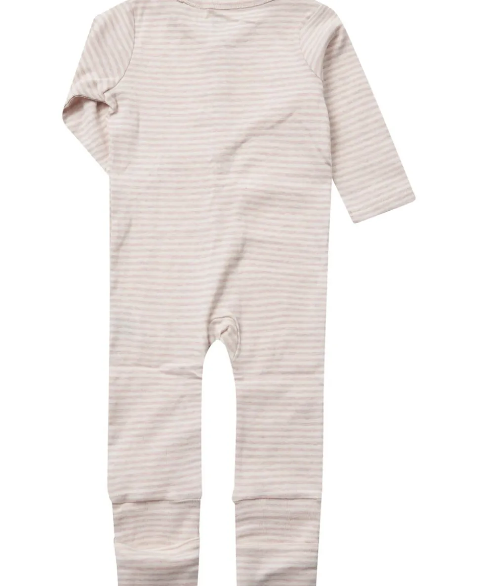 Bodysuit fra Magasin du Nord Collection i den blødeste kvalitet af 100% økologisk bomuld med GOTS-certificering. Bodyen er enkel i modellen med smalle striber, lange ærmer og ben, komfortable ribkanter, en ekstra foldbar kant ved benene samt trykknaplukning på fronten og ned langs det ene ben. En skøn dragt i den lækreste kvalitet.