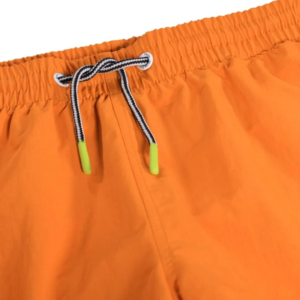 Badeshorts til aktive børn i genanvendt nylon med UV-beskyttelse 50+. Disse sporty shorts har en løs pasform, der går til midt på låret, og tilbyder komfort ved leg og aktiviteter ved vandet. Shortsene har en praktisk baglomme samt elastik og snøre i taljen, hvilket sikrer en god pasform. Indershortsene i blødt mesh tilføjer ekstra komfort.