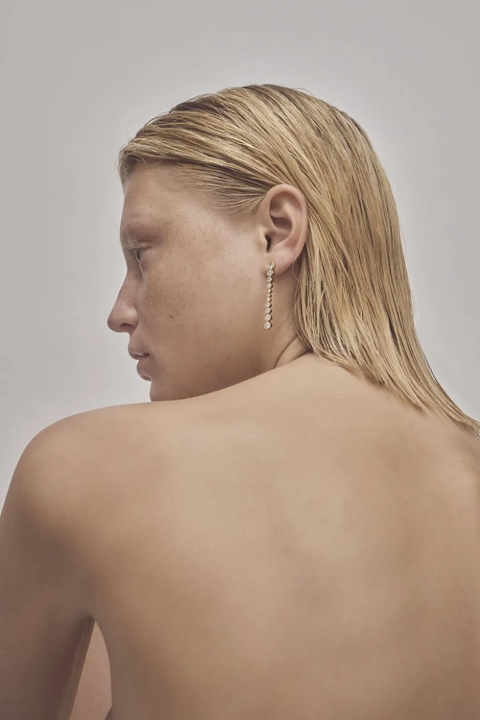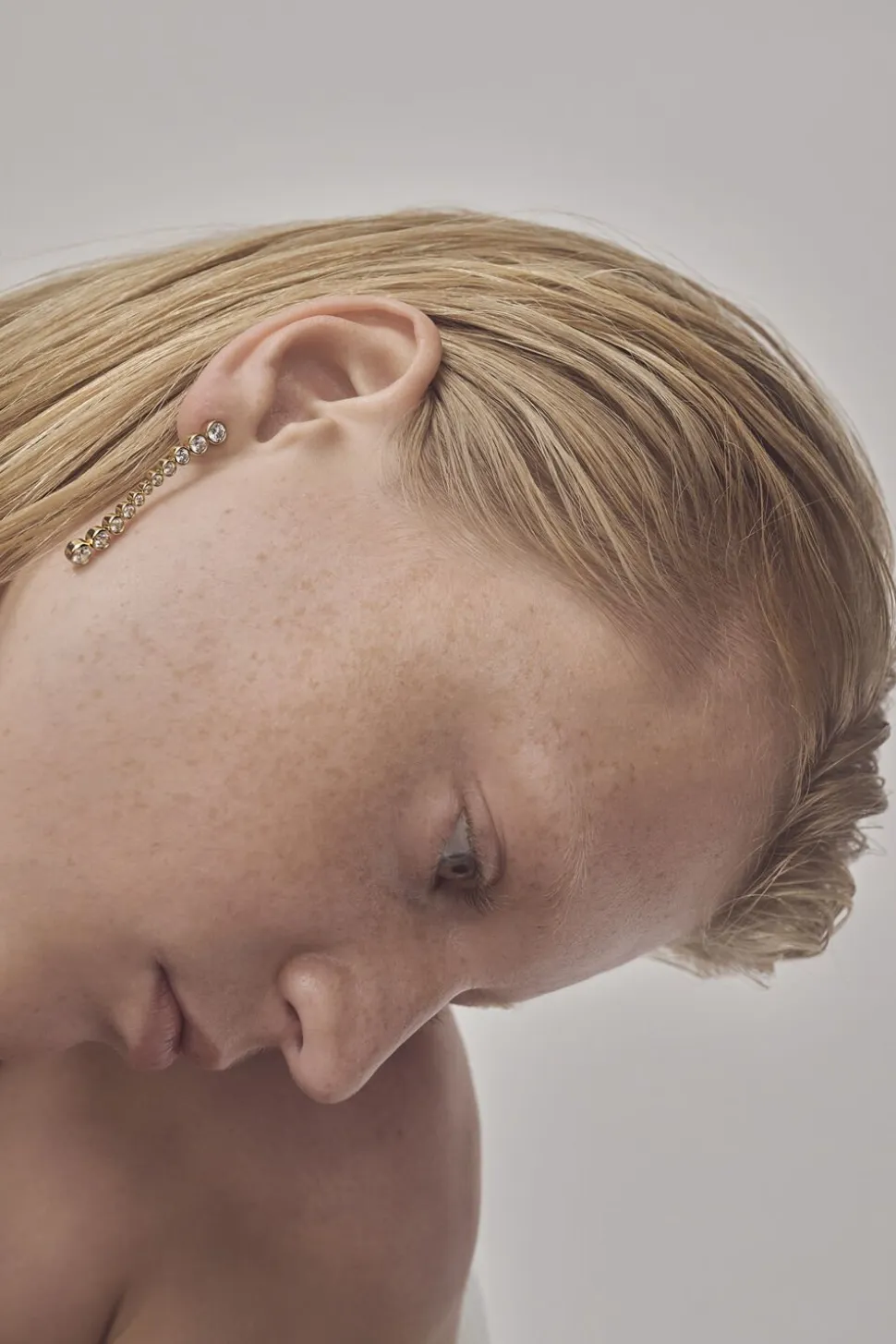 Et par 925 sterlingsølv øreringe med en 18k guldbelægning i et unikt design med funklende sten i et skiftende størrelsesforløb.