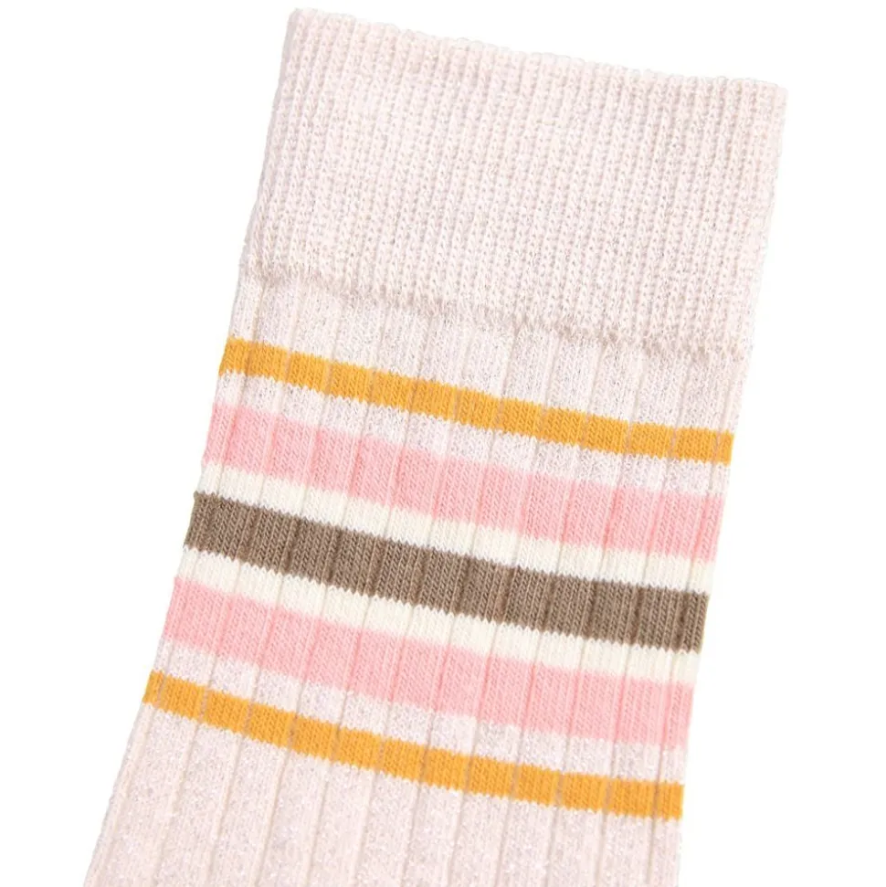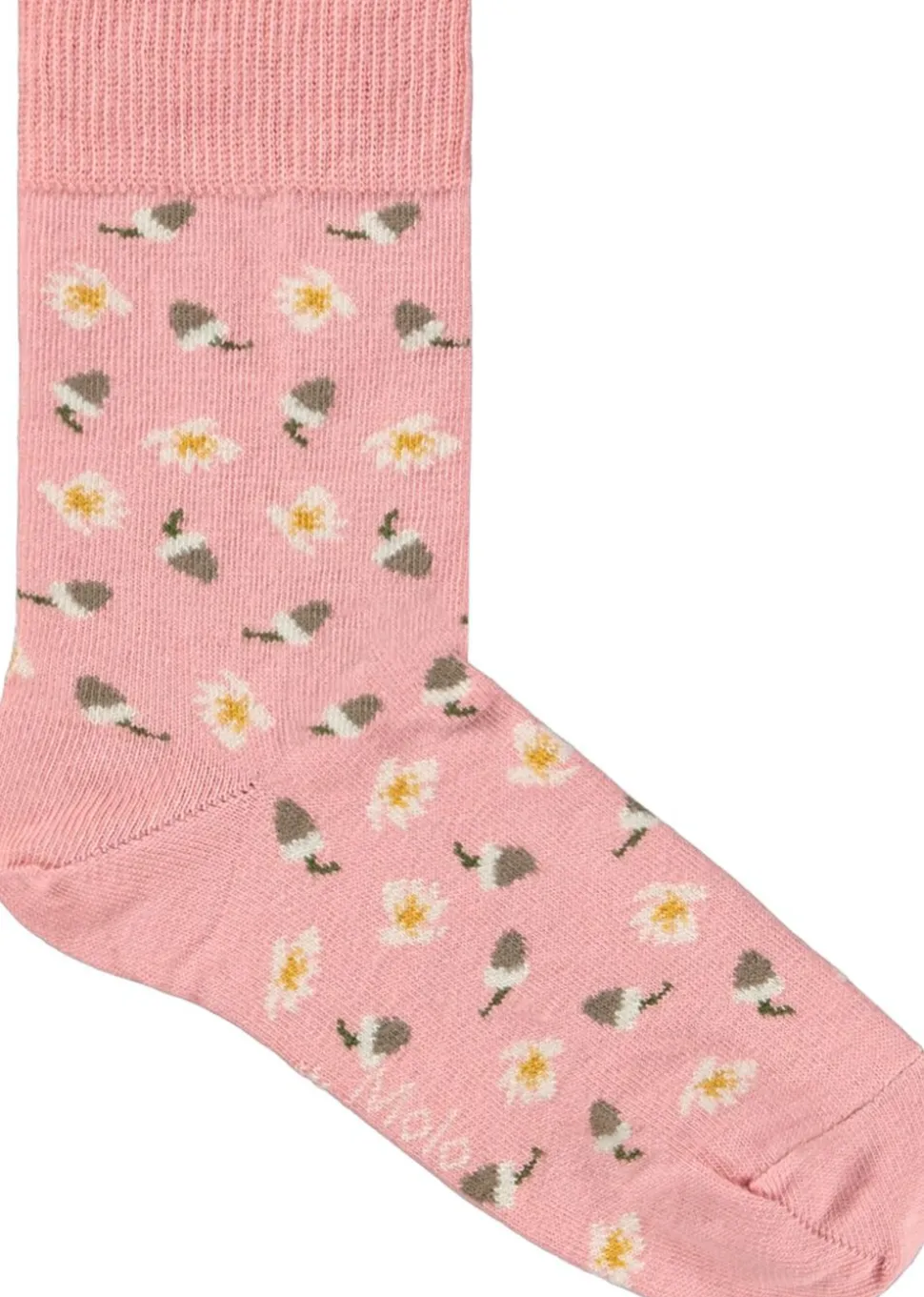 2-pak finstrikkede strømper fra Molo lavet i blødt bomuld med ribbet kant foroven. Pakken indeholder et par lyserøde strømper og et endnu mere lyserøde, begge med stjernemotiv.