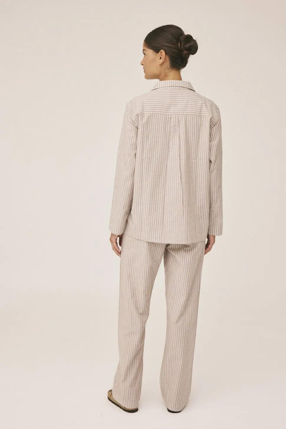 Pyjamasbukser fra Magasin du Nord Collection i den blødeste kvalitet af 100% økologisk bomuld med GOTS-certificering. Bukserne er enkle i modellen med et skønt, stribet mønster, elastik og snøre i taljen, sidelommer, en enkelt baglomme samt en løs pasform. Et par skønne pyjamasbukser i den lækreste kvalitet. Global Organic Textile Standard (GOTS) certificeringen sikrer en sporbar forsyningskæde af økologisk materiale, der overholder strenge miljø- og kemikrav samt ordentlige arbejdsforhold i alle led. Økologisk materiale kommer fra landbrug, hvor man arbejder med naturen på en måde så både økosystemer og biodiversitet opretholdes. Det betyder, at der ikke benyttes giftige kemikalier, at vandforbruget begrænses og at der i højere grad anvendes regnvand i produktionen.