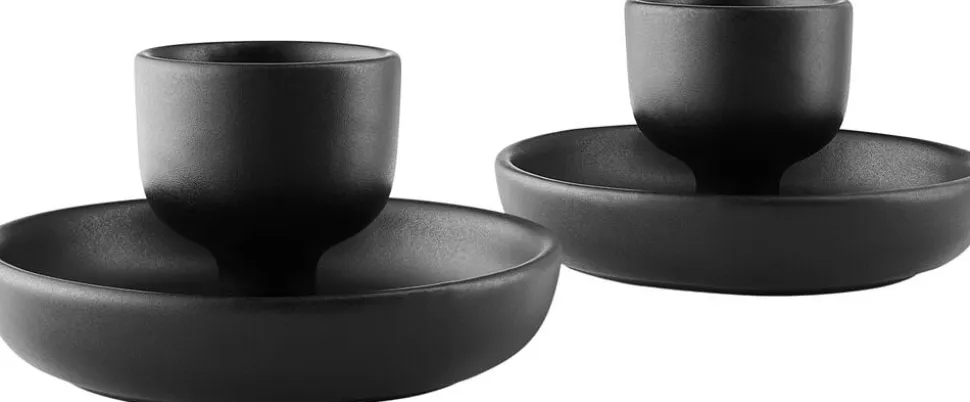 Sæt med to æggebægre, der tilføjer en charmerende og praktisk detalje til morgenbordet. Den indbyggede undertallerken fanger æggeskaller og salt og har plads til skeen, så du undgår rod og spild. Æggebægrene er fremstillet af robust stentøj og designet til at modstå dagligdagens slid i årevis. Rengøringen er nem, da de tåler maskinopvask.