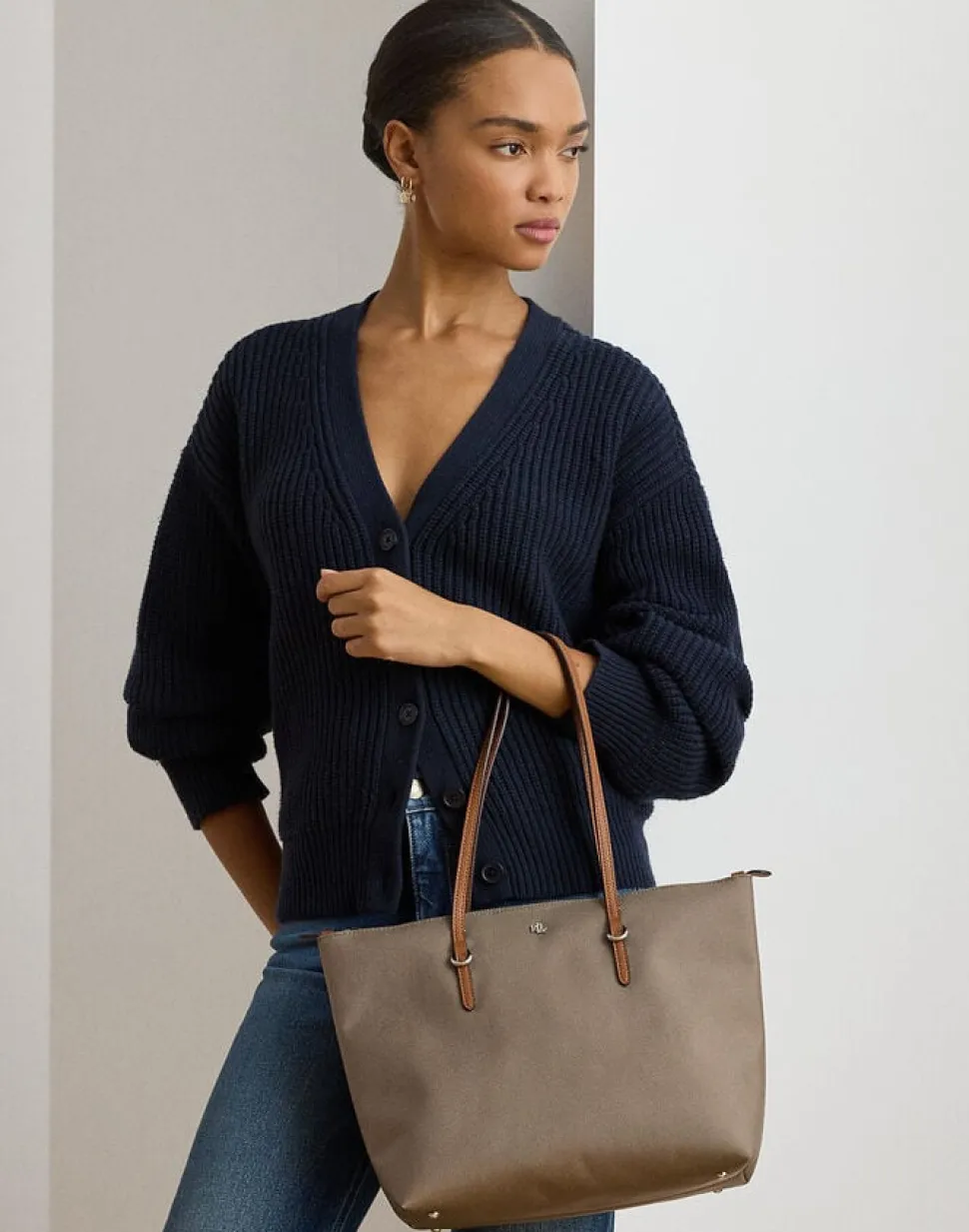 Den mellemstore Keaton-taske er fremstillet af holdbart nylon og designet med overdådige stropper i i imiteret læder. Den har en rummelig silhuet, der er perfekt til at bære dagens vigtigste ting. Den er et alsidigt must-have og har et “LRL”-metallogo foran for signaturstil.