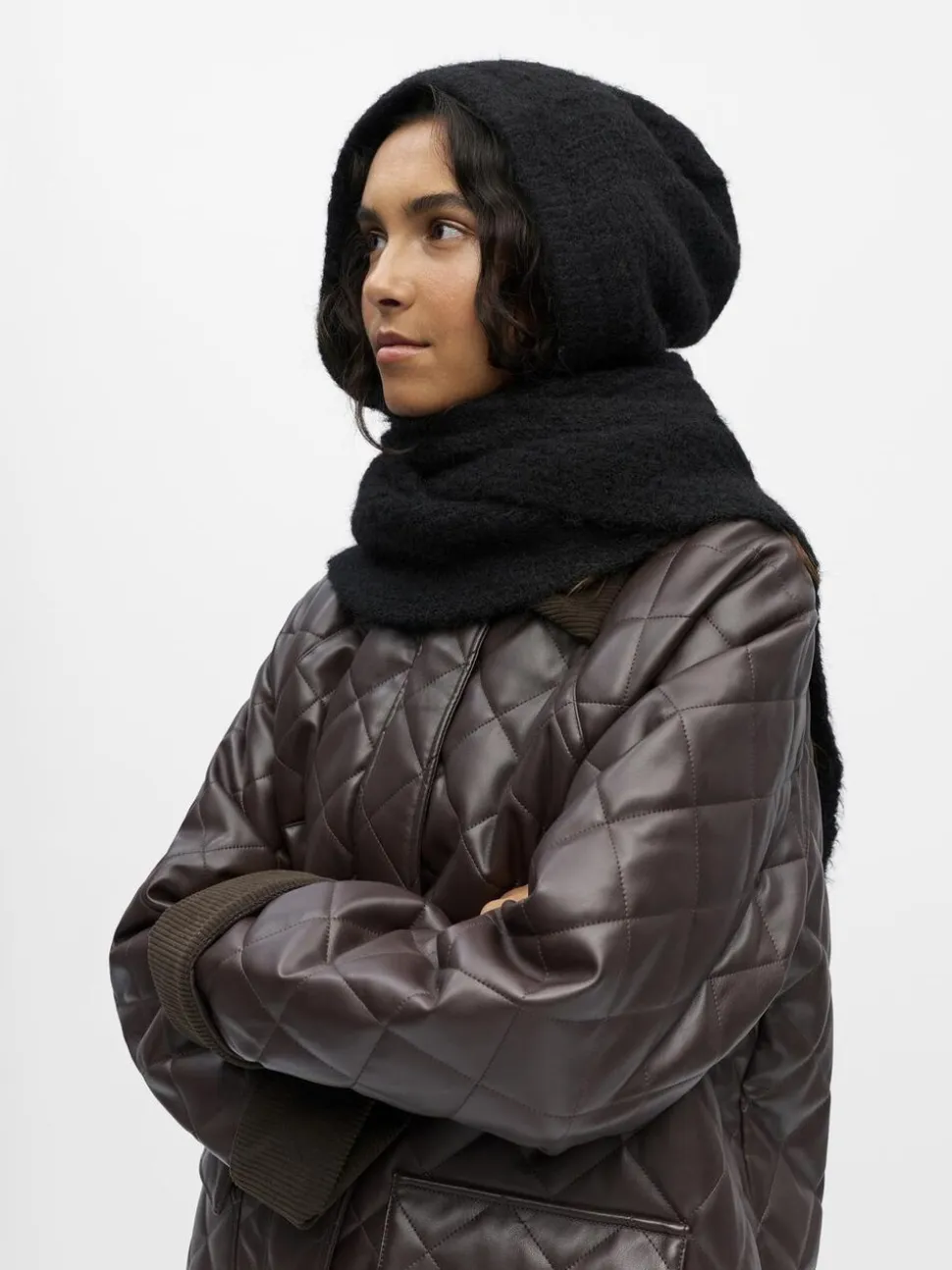 Strik er lavet med net af garnløkker, der giver varmt og behageligt tøj med stretch.