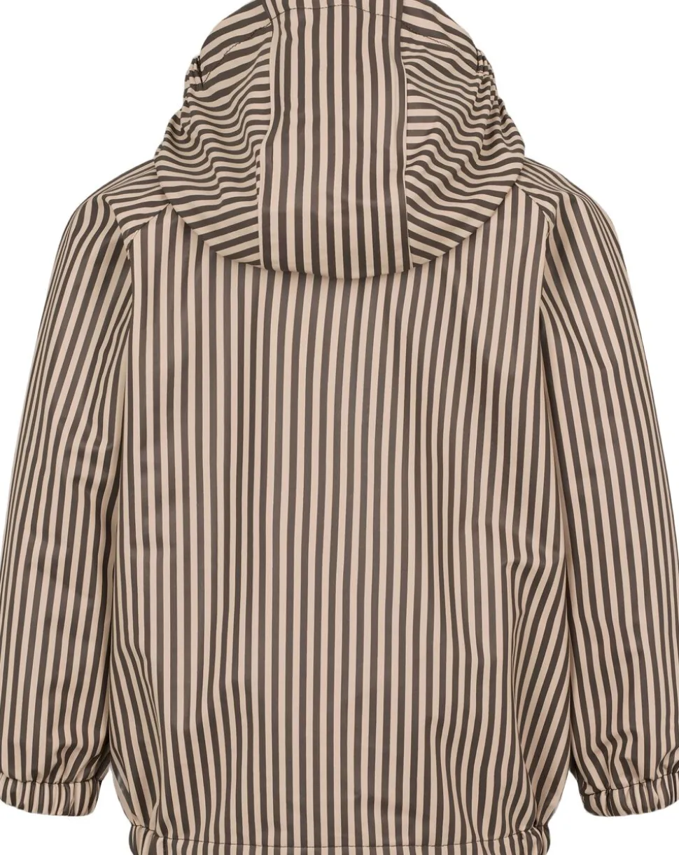 Regnsæt til de mindste. Regnbukserne har justerbare seler og har elastik i siderne for at sikre den bedste pasform. Regnbukserne har praktiske fodstropper som sørger for, at bukserne bliver siddende over støvlerne, så der ikke kommer vand ind. Jakken har en lomme foran og lukkes med lynlås og trykknapper. Jakken har en aftagelig hætte, der kan fjernes efter behov, og elastiske manchetter ved ærmerne, som sikrer en tætsiddende pasform og forhindrer vand i at trænge ind.