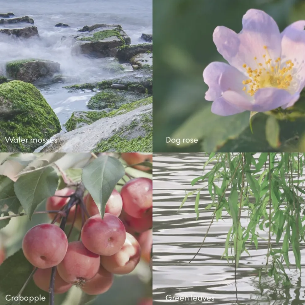 Duftnoter: Paradis æble, Rosa canina, vandmos og grønne blade.