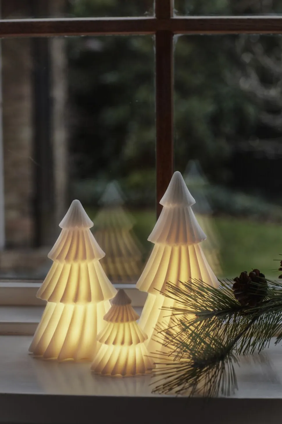 Voks træer med integreret LED lys der får træerne til at funkle afdæmpet. Olivia serien kan fint mikses i forskellige størrelser.