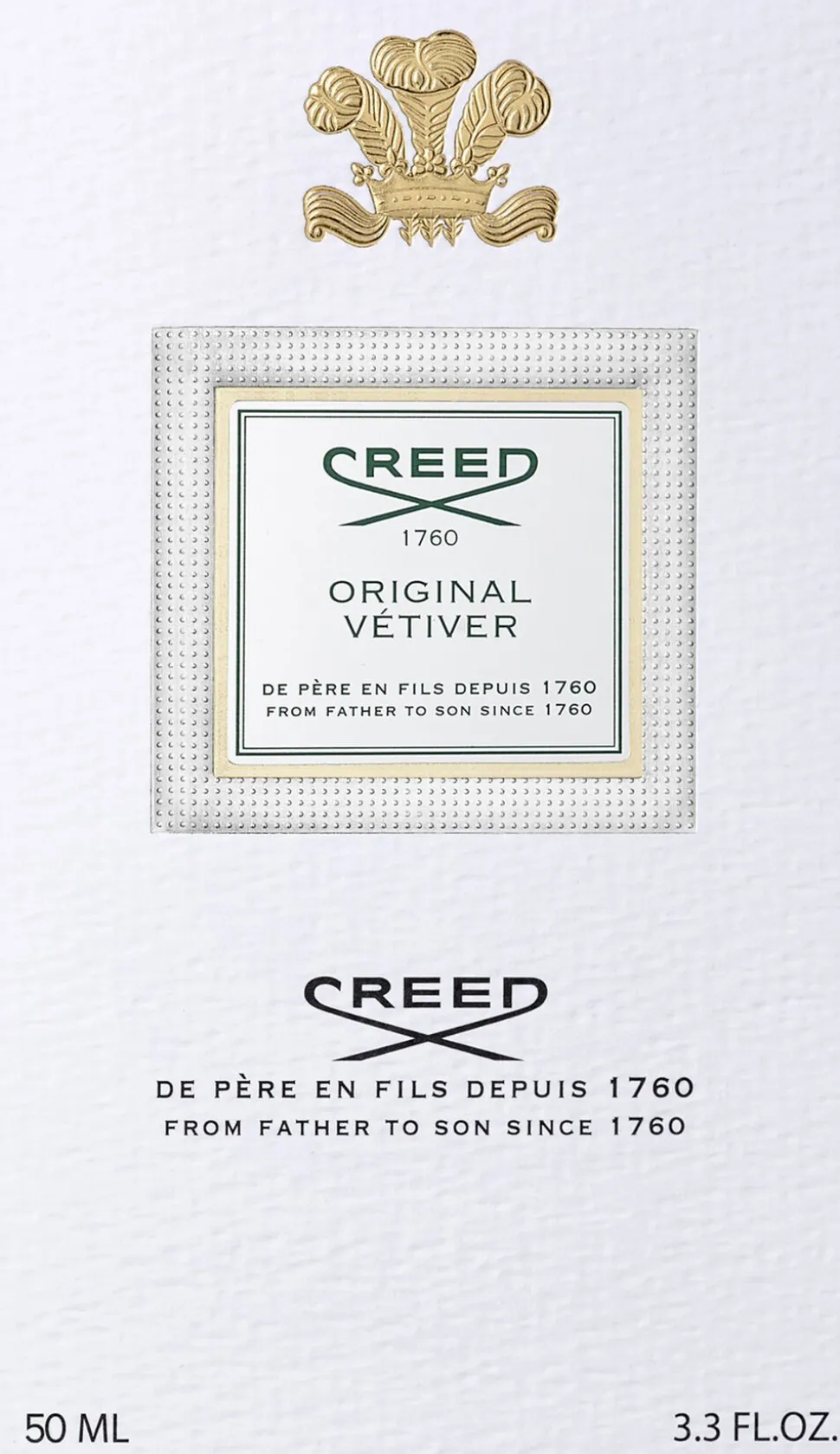 Original Vétiver Eau de Parfum byder på en ny og unik fortolkning af Vetiver. I modsætning til andre vetiver-dufte har Creed brugt både bladene og rødderne fra denne mytiske plante. Original Vétiver Eau de Parfum er en grøn og frisk maskulin duft, som bevarer de jordiske og læderagtige egenskaber fra den komplette vetiverplante. Den rige og træagtige base suppleres med forfriskende noter af citrus og et strejf af det friske friluftsliv takket være de karakteristiske vetiverblade skaber en duft der leder tankerne hen på en langvarig sommer. Med dens jordagtige duft og aroma af mos og grønt er Original Vétiver en duft af udsøgt kontrast.
