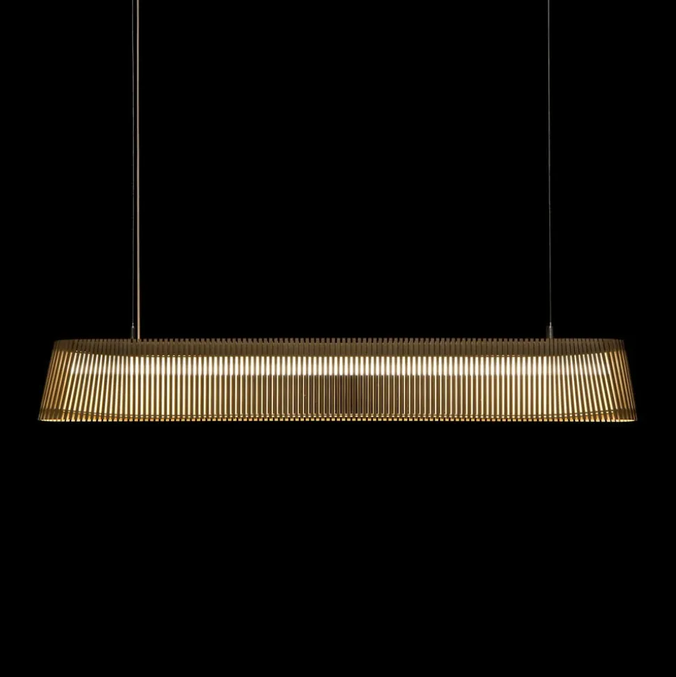 ‘Owalo’ er konstrueret med små rum, der diskret skjuler lyskilden. Dette skaber et varmt, hyggeligt og blendefrit lys. Pendlen bringer belysning ind i det moderne designunivers samtidig med at bevare forbindelsen til traditionelle materialer og snedkerhåndværkets historie.