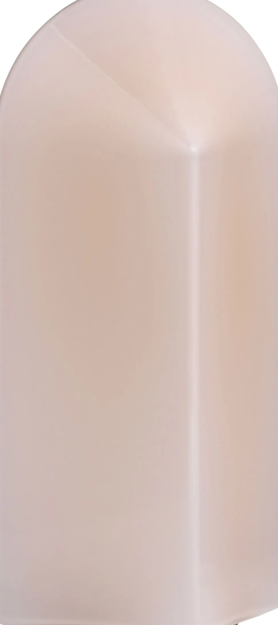 Bordlampen har en firkantet base og en buet top i farvet glas. De nøje udvalgte størrelser og farver komplementerer hinanden godt både i højde og farve. Lampen er både smuk flere sammen som en samling af lysende skulpturer, eller alene en enkelt lyskilde på et sengebordet eller i vindueskarmen.