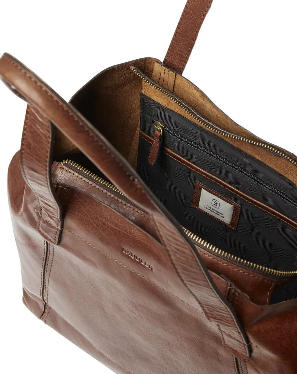 Klassisk og stilet tote-taske model Paris fra Saddler i lækkert blødt bøffellæder. Tasken har lynlåslukning i toppen og knapper i siden der kan ændre taskens udseende. Indvendigt er der to rum, det ene med lynlåslukning.