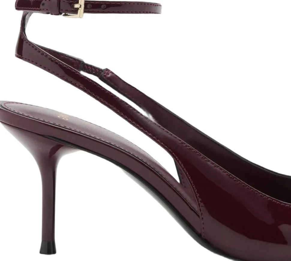 Patentlædereffekt, spids, stilet i hælen, 7,5 cm hæl, spændelukning ved anklen