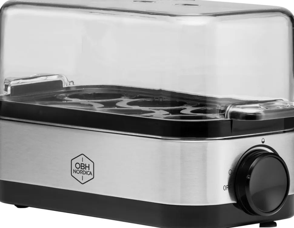 Æggekoger, der tilbereder 1-6 æg ad gangen på få minutter. Timer tilpasser tilberedningstiden til blødkogte, mellem- eller hårdkogte æg. Hæld vand på, tænd æggekogeren og vent et par minutter, så er dine perfekt kogte æg klar. Lydsignal giver dig besked, når æggene er færdige. Målebæger med æggeprikker angiver passende vandmængde.Lydsignal giver dig besked, når æggene er færdigeKoger 1-6 æg ad gangenTimer tilpasser tilberedningstiden til blødkogte, mellem- eller hårdkogte æg00