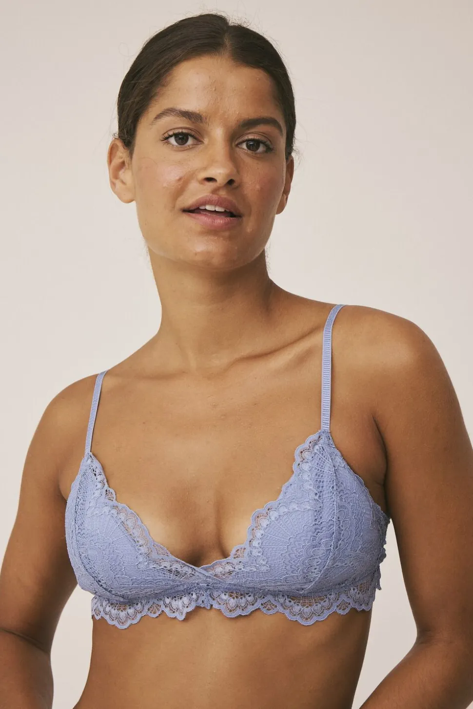 BH fra Magasin du Nord Collection i en smuk blondekvalitet. BH’en er enkel i modellen med trekantede, vatterede skåle, smalle, justerbare skulderstropper, hægtelukning på ryggen samt en smal elastikkant under skålene. En skøn BH i den lækreste kvalitet. Se også de andre fine styles i Petal-serien.