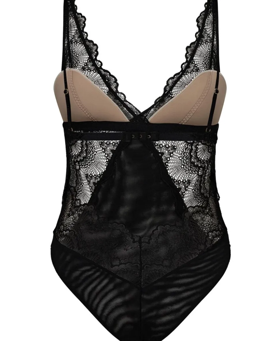 Bodystocking fra Magasin du Nord Collection i den fineste blondekvalitet. Bodystockingen er enkel i modellen med smalle, justerbare skulderstropper, let vatterede skåle, en bred elastik under brystet, trykknaplukning i den forede kile samt en smal hasp-lukning og en dyb V-udskæring på ryggen. En skøn bodystocking i den lækreste kvalitet.