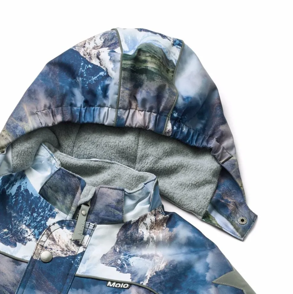Denne regnbuefarvede flyverdragt fra Molo er lavet i genanvendt polyester og er både vind- og vandtæt. Den har en aftagelig, foret hætte, frontlommer med vindfang samt lynlåse på fronten med overfald og hagebeskytter.