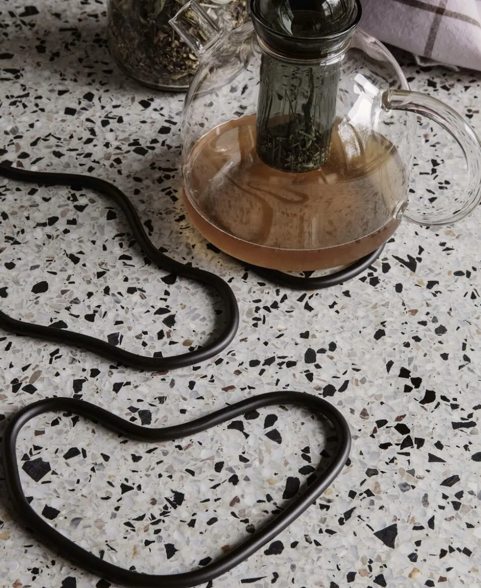Som de spejler de organiske uregelmæssigheder, når vand er i bevægelse, kommer Pond-bordskånerne som et sæt af tre messingringe, der beskytter spisebordet mod varme pander og gryder. Sammen udformer de en æstetisk komposition på bordet, og du kan vælge at hænge dem op på en krog som dekoration, når du ikke bruger dem.