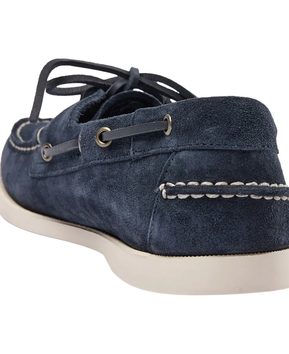 Disse langtidsholdbare bådsko er konstrueret til at være det perfekte nautiske fodtøj og er lavet af et unikt stykke blødt, men tykkere, resistent kvalitet af uforet ruskind og håndsyet med det fineste håndværk: De leveres med lædersokkefor, 360° råt snøresystem og skridsikre, skridsikre gummisåler, der giver stabilt greb under alle vejrforhold. Portland mocs bærer i deres DNA en medfødt kærlighed og bånd til byen Portland, en af de største havne i New England, også vært for en verdensberømt Yachting Club.