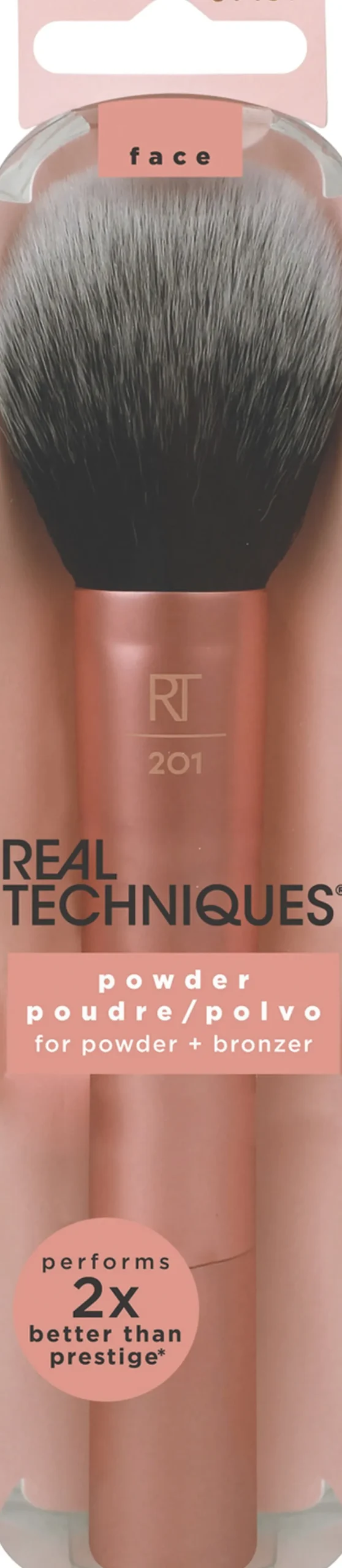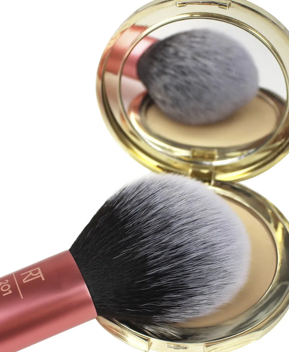 Applikerer pudder og mineral foundation med et jævnt og naturligt resultat. Børsten er håndlavet med fyldige taklonfiber (syntetiske hår), og har et langt aluminiumskaft som gør børsten let at bruge. 100% dyrevenlig. Enden af børsten er flad og bred, så denne kan stå selv.