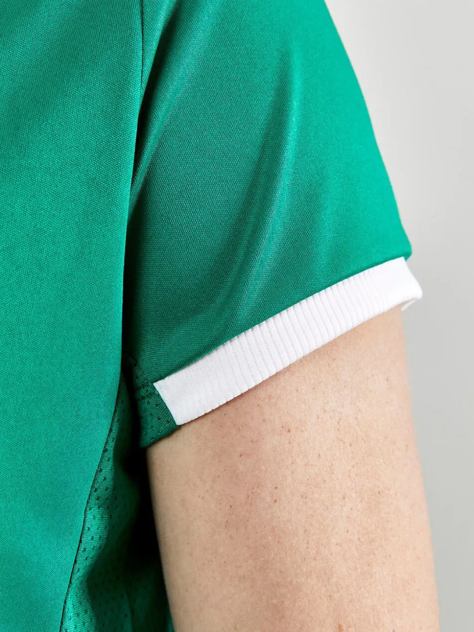 Craft Progress 2. 0 Solid Trænings T-shirt er den ideelle kombination af funktionalitet og komfort til krævende træningssessioner. Med et let, åndbart materiale og strategisk placeret ventilation under armene sikrer den optimal fugttransport og køling. Den klassiske V-hals og ribkant ved ærmer og krave giver et sporty, stilrent look, mens den tætsiddende pasform sikrer bevægelsesfrihed. Fremstillet i genanvendt polyester, der både er miljøvenligt og hurtigtørrende. Perfekt til både intensiv sport og hverdagsbrug, når du ønsker høj ydeevne og et tidløst design.