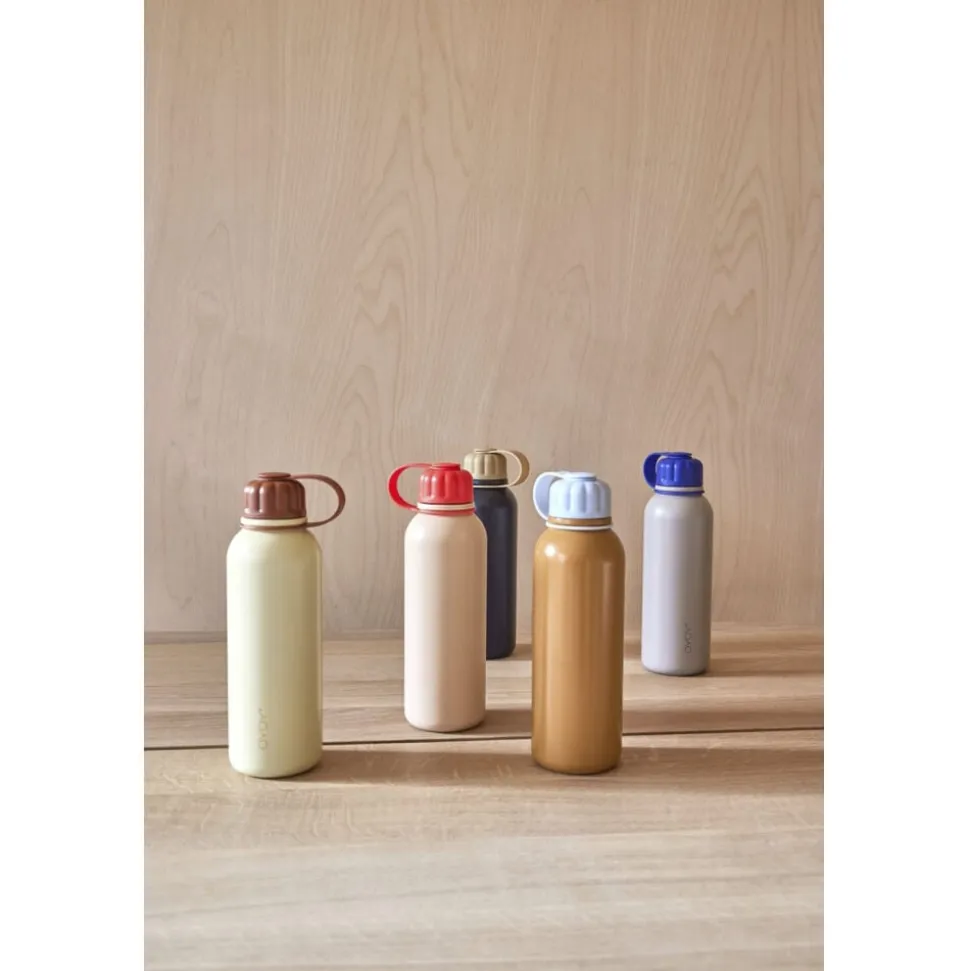 Denne cool vandflaske kan indeholde 520 ml varm eller kold væske. Den kommer med et normalt skruelåg. Pullo vandflaskerne er lavet af rustfrit stål. Den har en termisk funktion og holder væsker varme i op til 6 timer og kolde i op til 12 timer. Låget lukker helt tæt på grund af silikonen i låget, som også er BPS fri. Kun håndvask (tåler ikke opvaskemaskine). Fødevaregodkendt Velegnet til opvaskemaskine og mikrobølgeovn. For mere information om fødevarekontaktmaterialer og overensstemmelseserklæringer, brug venligst dette link- https-//oyoy. presscloud. com/digitalshowroom/#/gallery/Compliance (Du kan søge efter en bestemt vare ved at indtaste varenummeret i søgefeltet øverst til højre)
