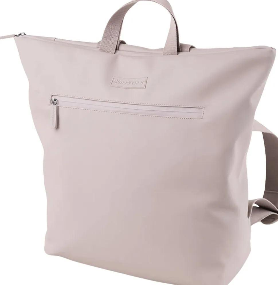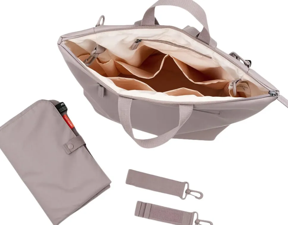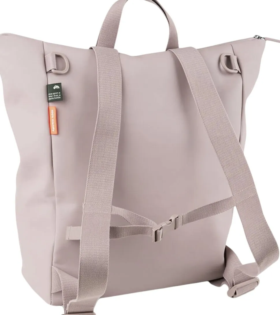 Den praktiske puslerygsæk kombinerer funktionalitet, holdbart design og bæredygtighed. 38 PET flasker genanvendes ved fremstillingen af både det ydre stof og foret på denne rummelige og praktiske puslerygsæk til alle babys nødvendigheder på farten. Den brede åbning giver let adgang til indholdet. 7 praktiske indvendige lommer og en udvendig lomme med lynlås gør organisering til en leg. To justerbare stropper giver dig mulighed for at justere pasformen og gøre rygsækken behagelig at have på. Der medfølger et foldbart og vandtæt pusleunderlag, samt to barnevogns- eller klapvognsstropper. Den vandtætte overflade og lynlåse gør at rygsækken er vejrsikker. Tag på eventyr med stil med denne unisex rygsæk i en skøn powder tone.