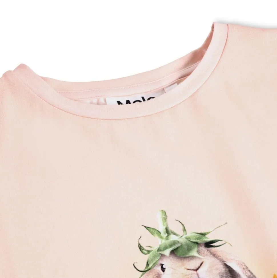 Blød t-shirt til børn lavet af kvalitetsbomuld, der sikrer komfort hele dagen. Den har korte ærmer og en ribkant ved halsudskæringen, hvilket gør den nem at tage på. Den længere rygtilføjer funktionalitet og dækker godt. Det charmerende dyremotiv med blomsterhætter vil blive et hit hos både børn og forældre. En must-have til leg og hverdag.