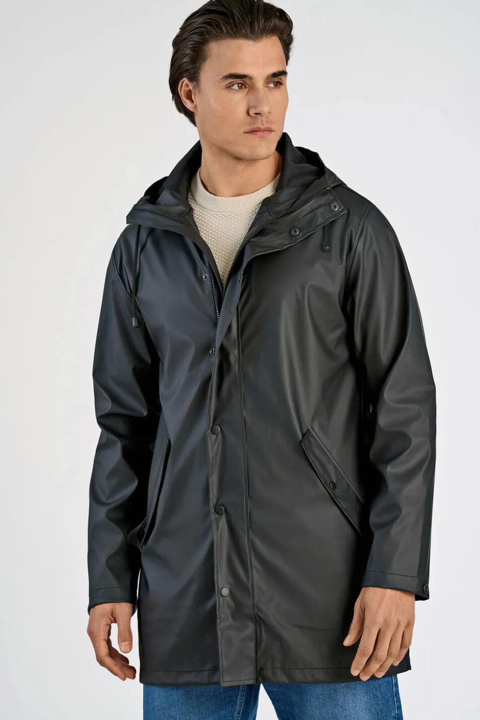 Regnjakke fra Lindbergh i enkelt design. Regnjakken er vandtæt (3000mm) og har en praktisk hætte med snøre. Der er slids bagpå for ekstra bevægelsesfrihed og to trykknapper ved ærmerne, så størrelsen kan justeres. Lukkes med trykknapper og har to sidelommer