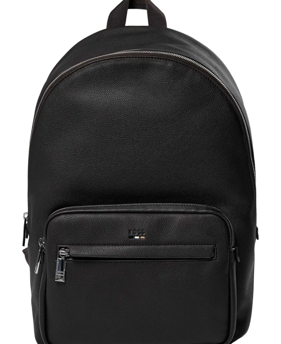 Denne rygsæk fra BOSS Menswear har en signaturstribedetalje og et præget logo og er fremstillet i syntetisk betrukket stof med en kornet tekstur. Justerbare skulderstropper. Syntetisk betrukket stof, undertiden benævnt faux læder, er et stof designet til at ligne ægte læder, og / eller vise en mat, skinnende, glat, eller tekstureret, belagt udseende. Mål: 42 x 28, 5 x 14 cm