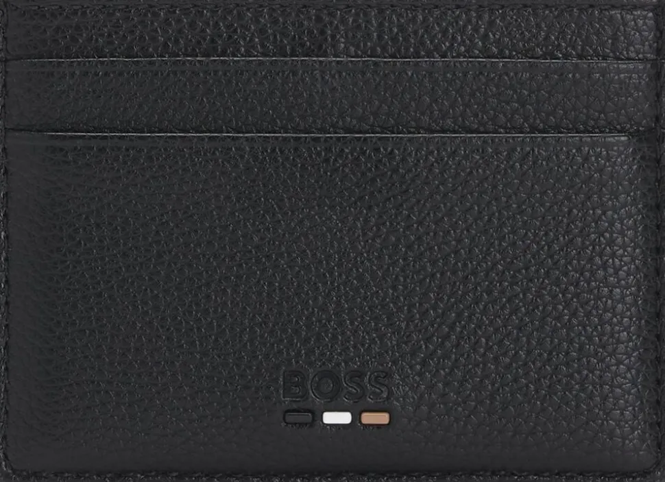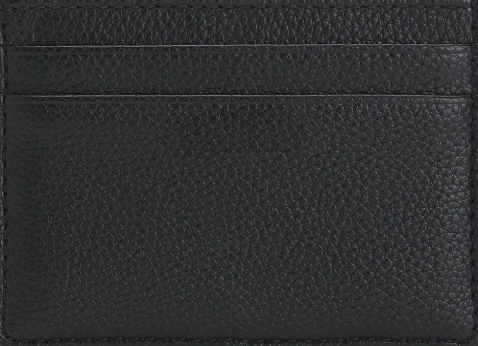 Korneret kortholder i kunstlæder med signaturdetaljer.