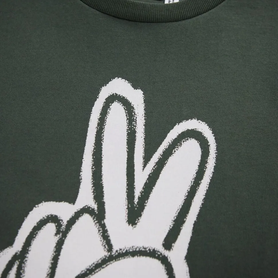 Denne grønne t-shirt fra Molo er lavet af blødt økologisk bomuld med korte ærmer og ribkant i halsen. T-shirten har en løs pasform.