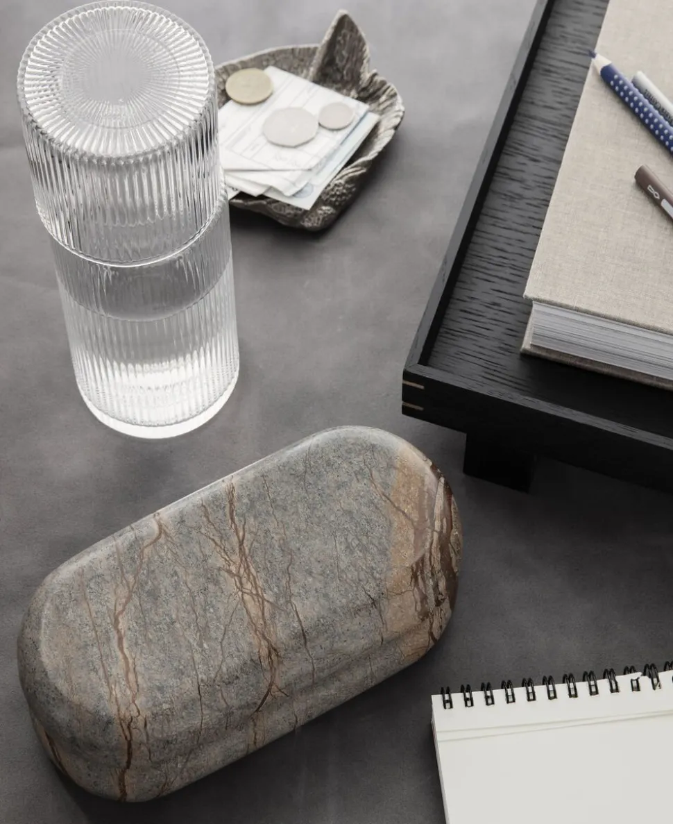 Sørg for at få nok vand hele dagen med dette smarte sæt bestående af en lille karaffel og et glas, som også kan bruges som låg til karaflen. Sættet har dele seriens særlige karakteristika med sit let riflede og mundblæste glas. Det kan blive dit sunde kontortilbehør eller en ny favorit på sengebordet.