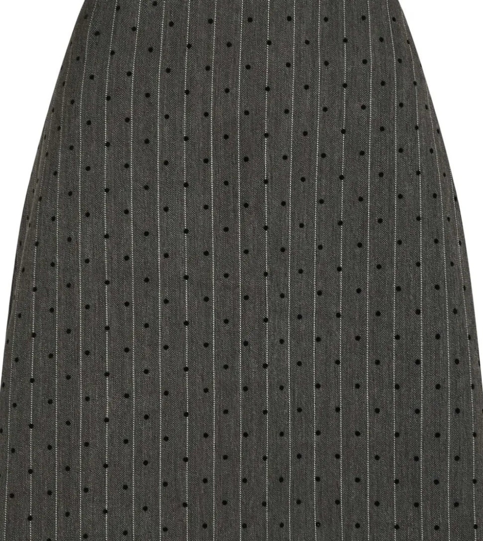 Mini nederdel med lodrette striber samt prikker. Nederdelen har en normal taljehøjde og lukkes med en skjult lynlås i siden. Pasformen er almindelig. Modellen er iført størrelse 36.