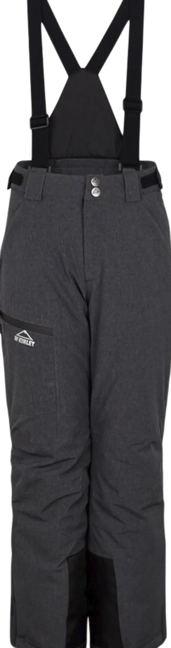 Leder du efter et par skibukser til din dreng eller pige til skiferie eller professionelt brug, så tag et kig på Mckinley Roy Ski Pant. Skibukserne er designet med seler som holder bukserne oppe, og giver komfort. Skibukserne er designet i et slidstærkt design med fin bevægelsesfrihed og med tætsiddende bindinger ved anklerne som holder sne ude. Skibukserne har kelvar beskyttelse hvor bukserne oftes bliver slidt. Skibukserne kan spændes ind i taljen og har to sidelommer med lynlås. Rigtig gode og komfortable skibukser med fin pasform til børn og unge.