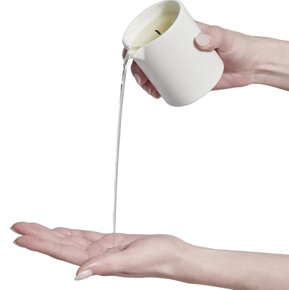 Boksindhold · Turn Me On Massage Oil Candle 150ML · Hvid Opal Gua Sha-sten
