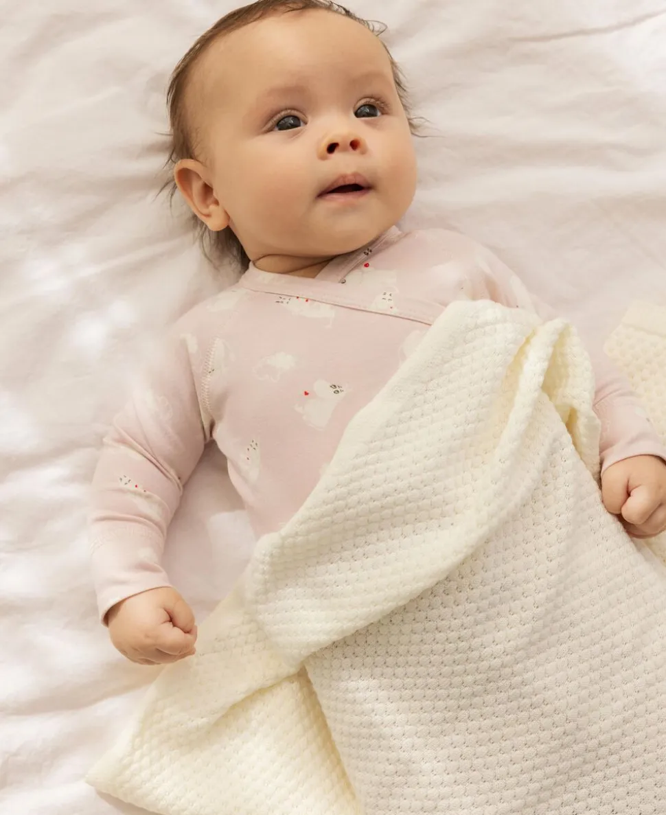 Langærmet heldragt med fødder til de mindste i et sødt delefin print. Heldragten har slå-om-lukning og lukkes med trykknapper fra halsen og ned langs det ene ben. Heldragten er både blød, strækbar og behagelig at have på.