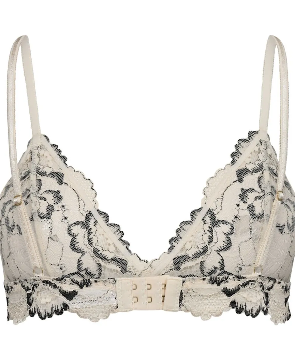 BH fra Magasin du Nord Collection i en smuk blondekvalitet. BH’en er enkel i modellen med trekantede skåle, smalle, justerbare skulderstropper, hægtelukning på ryggen samt en smal elastikkant under skålene. En skøn BH i den lækreste kvalitet. Se også de andre fine styles i Ruby-serien.