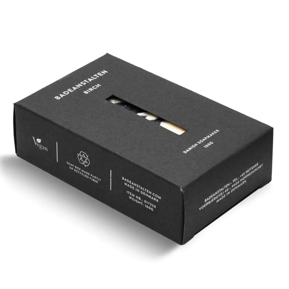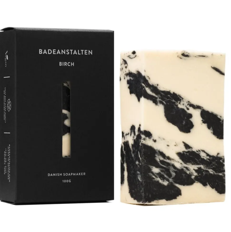 Med både ingredienser, duft og Design tager Birch dine sanser med til de nordiske birkeskove på en gåtur blandt de høje, slanke træer. Badeanstalten inviterer dig til et øjebliks Zen under de grønne trætoppe med denne sæbe, som indeholder lokalt produceret birkesap og en frisk duft af træ og grønne bladknopper. Birch har en dejlig cremet Skum, der gør sæben til en sand fornøjelse i badet. Design er stilrent og minimalistisk med sorte og hvide farver inspireret af birketræernes bark.