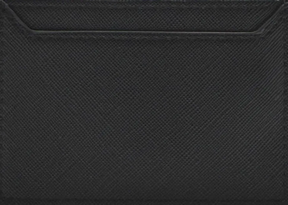 Faux-saffianolæder, små, flere kortpladser, ulukket, præget logo, dekorative sømme.
