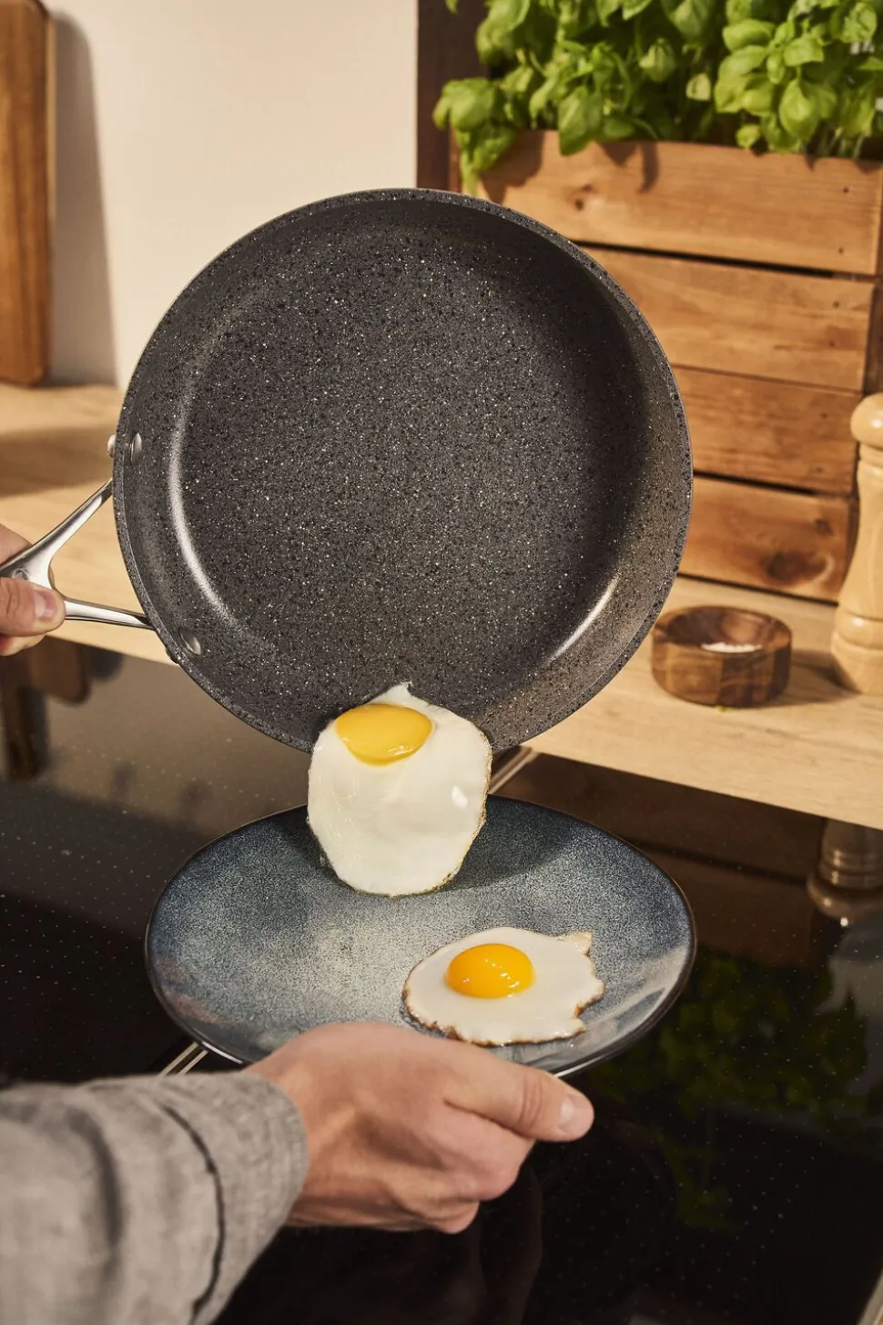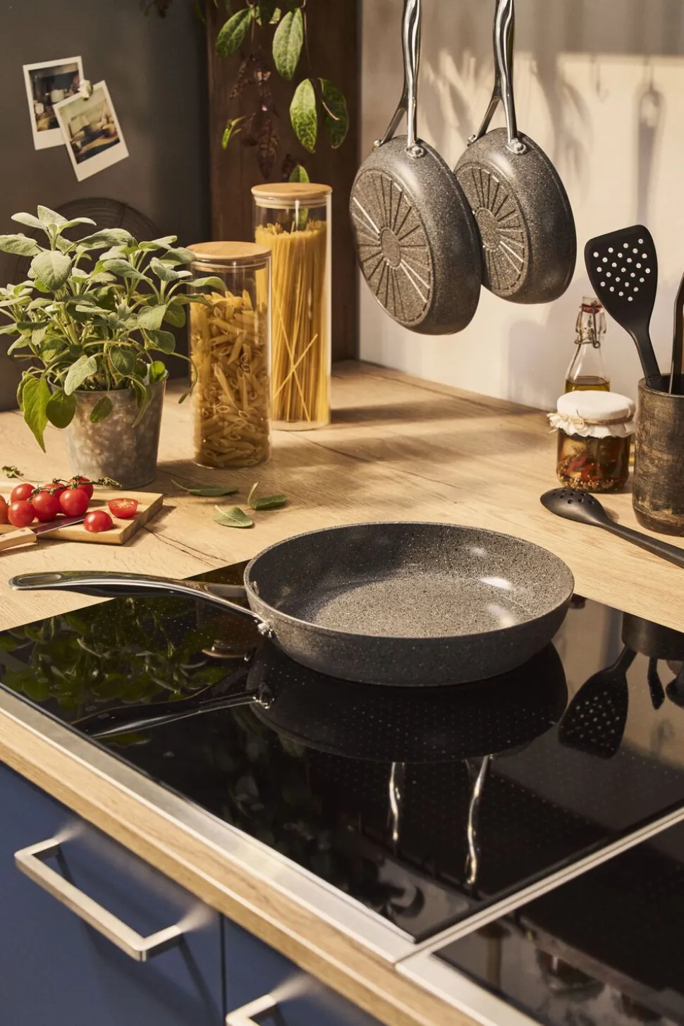 Mere robusthed for mere lethed. Med BALLARINI Salina stegepanden får du italiensk passion i dit Cucina. Det er den næste generations keramiske belægning garant for: CERAFORCE TITANIUM Udstyret med en ekstra robust basis af hård titanium er den op til fem gange mere holdbar end vores tidligere keramiske belægninger*. Samtidig giver den dig fremragende nonstick-egenskaber: Nu er det muligt at lave italienske lækkerier med mindre fedtstof. Den innovative Radiant-induktionsbund leder varmen særligt jævnt gennem den massive aluminiumskerne. Det kølige håndtag i rustfrit stål med stay cool-funktion sikrer altid en behagelig og sikker håndtering. Molto bene!