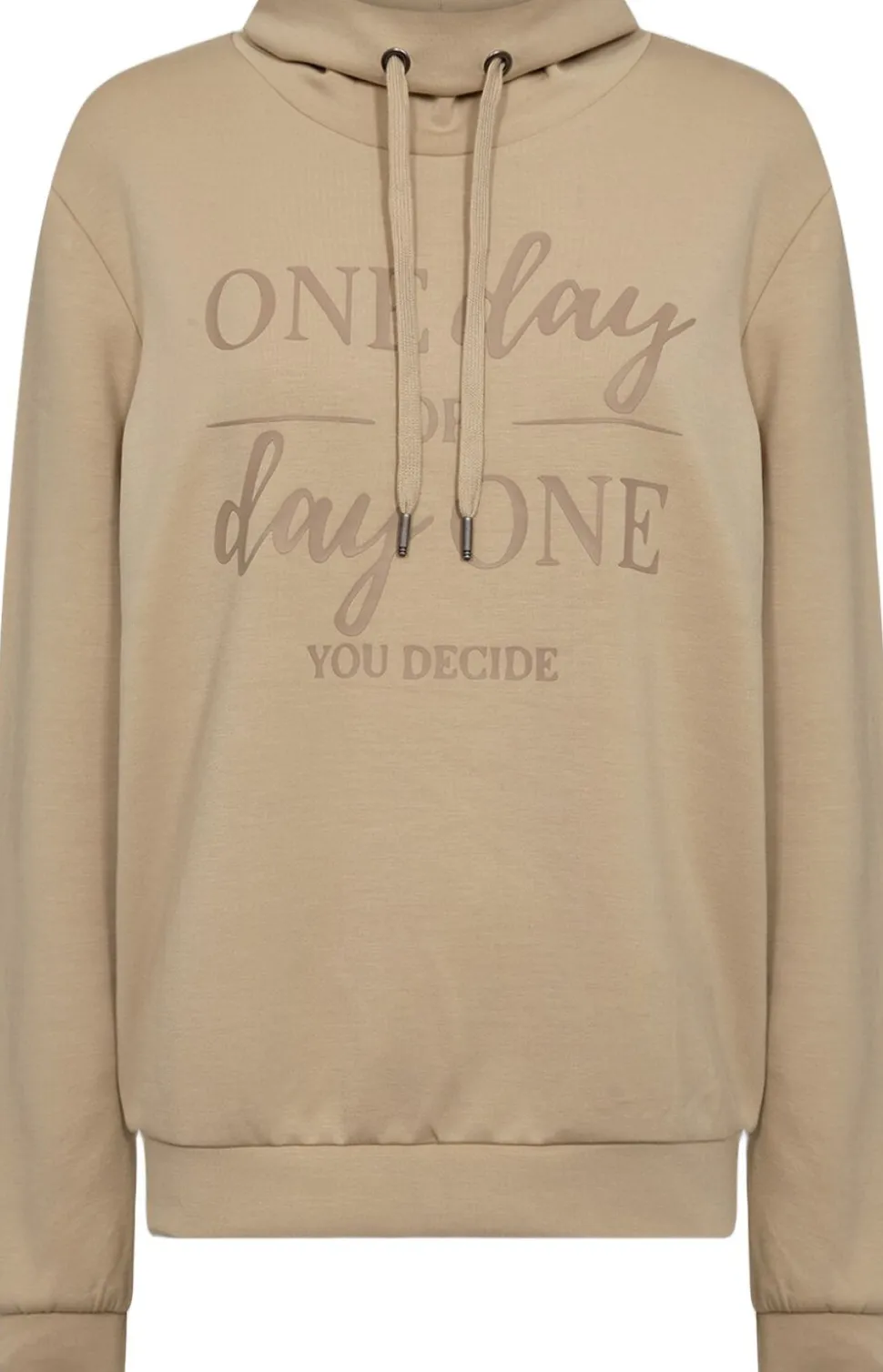 SC-BANU 256 er en sweatshirt lavet af 48% modal, 48% polyester og 4% elastan. Den har en højhalset krave med snøre og et motiverende print foran. Sæt den sammen med jeans eller leggings for et afslappet og behageligt look.