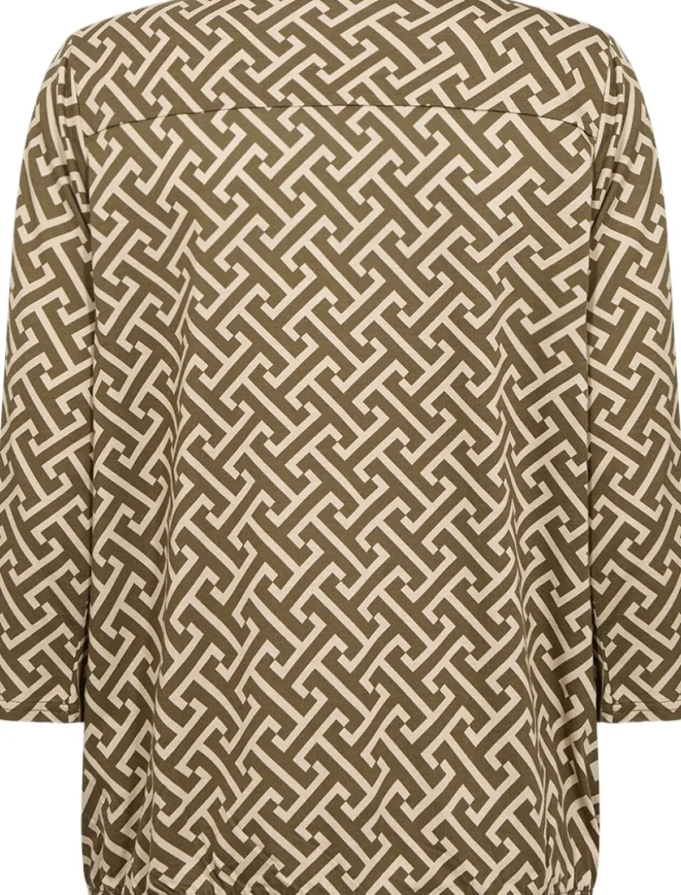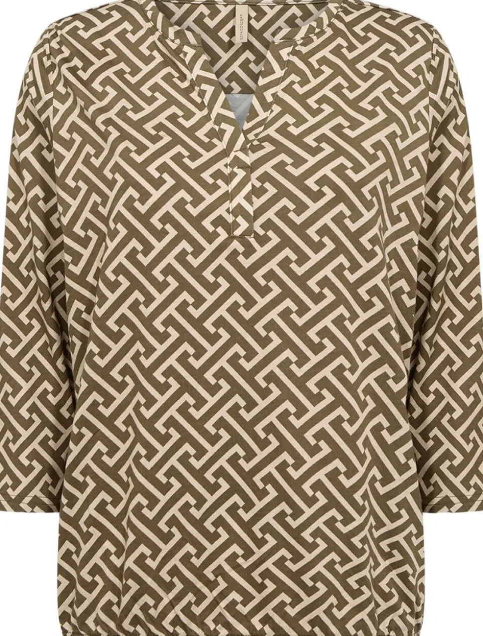 SC-FELICITY AOP 519 Bluse er fremstillet af 50 % økologisk bomuld og 50 % viskose. Den har et geometrisk print, en V-udskæring og trekvartlange ærmer. Sæt den sammen med jeans eller skræddersyede bukser for et anderledes look.